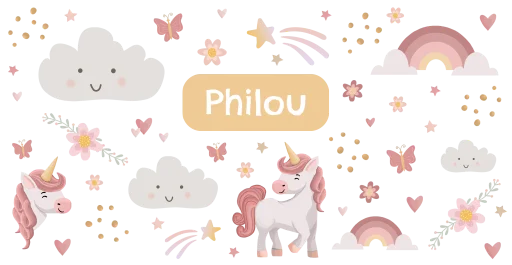 Een schattige RVS drinkfles met naam. De fles heeft illustraties van eenhoorn, wolkjes, regenboogjes en schattige sterren. Pas het ontwerp naar wens aan.
