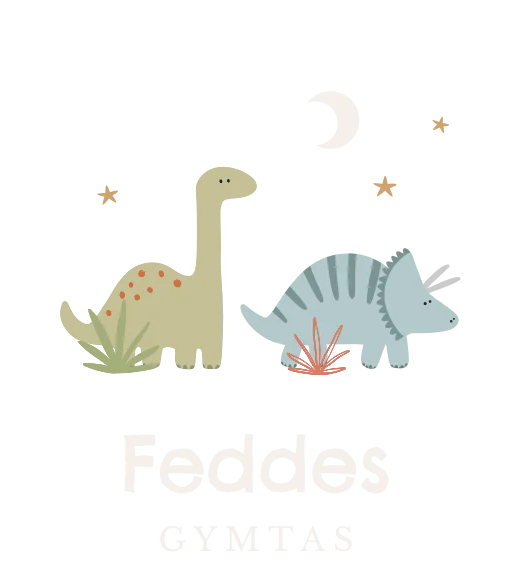 Wat een stoere en hippe gymtas! De tas heeft een hippe illustratie van twee dino's. Onder de dino's lees je de naam van het kind. Pas het ontwerp naar wens aan in onze opmaaktool.