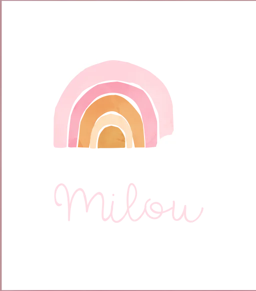 Wat een schattige en hippe gymtas! De tas heeft een schattige illustratie van een regenboog met wolkjes. Daaronder lees je de naam van het kind. Pas het ontwerp naar wens aan in onze opmaaktool.