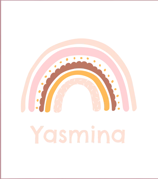 Wat een schattige en hippe gymtas! De tas heeft een schattige illustratie van een regenboog. Daaronder lees je de naam van het kind. Pas het ontwerp naar wens aan in onze opmaaktool.