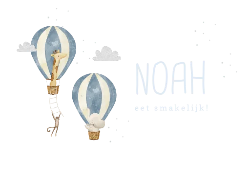 Geef je kind de lunch mee in deze onwijs leuke RVS lunchbox met blauwe luchtballonnen en schattige jungledieren. Bewerk het ontwerp geheel naar wens in de online editor.