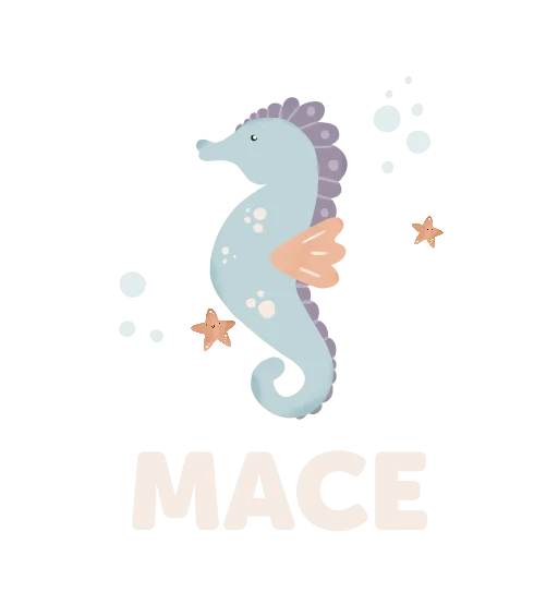 Rugtas Classic met naam en vrolijk zeepaardje