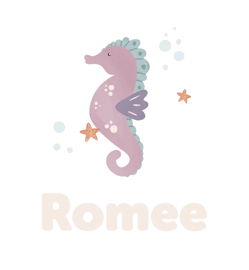 Een schattige rugtas met opdruk, verkrijgbaar in 2 maten. Perfect voor het kinderdagverblijf of de basisschool. Op de voorzijde staat een lief zeepaardje met een naam en zeesterretjes. Pas het ontwerp naar wens zelf aan.