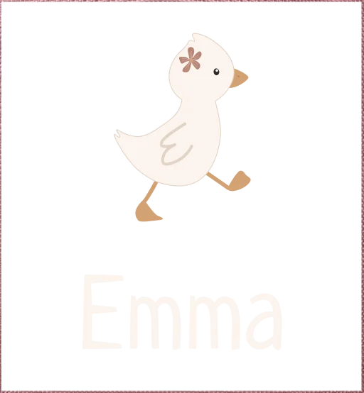 Een toffe rugtas met opdruk. Op het voorvakje staat de naam en de illustratie van een eend met bloem. Pas het ontwerp naar wens zelf aan in onze online opmaaktool.