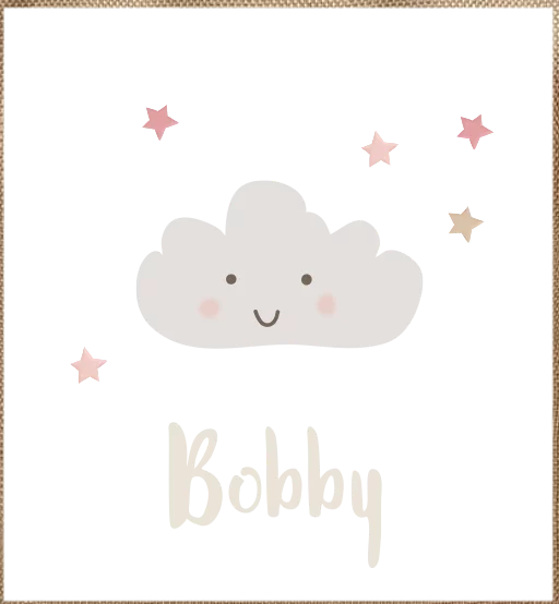 Dit is een lieve rugtas met opdruk. Op de rugzak lees je de naam van het kind en zie een vrolijk wolkje met een gezichtje. Om het wolkje heen staan sterretjes, met daaronder de naam van je kind. De rugtas kan helemaal naar wens aangepast worden in onze online opmaaktool.