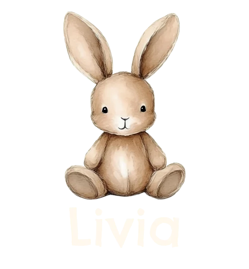 Een toffe rugtas met opdruk. Op de voorzijde zie je een lieve illustratie van een zittend konijntje. Onder het konijn lees je de naam van het kindje. Pas het ontwerp naar wens zelf aan.