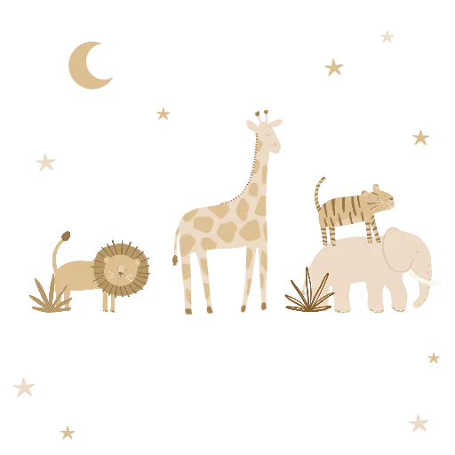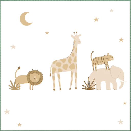Een lieve rugzak Junior met opdruk. Op de voorzijde lees je de naam van het kindje en zie je een jungledieren onder een sterrenhemel. Pas het ontwerp naar wens zelf aan.