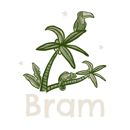 Een toffe rugzak Junior met opdruk. Op de voorzijde lees je de naam van het kindje en zie je een illustratie van een toekan in een palmboom. Pas het ontwerp naar wens zelf aan.