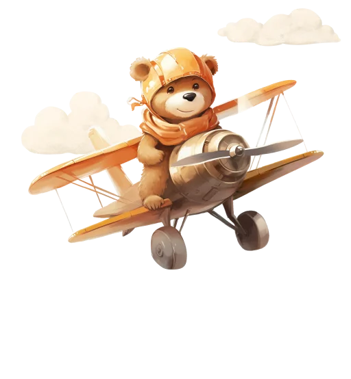 Een toffe rugtas met opdruk. Perfect voor het kinderdagverblijf of de basisschool. Op de voorzijde staat een stoer design met een naam en een beertje in een vliegtuig. Pas het ontwerp naar wens zelf aan.