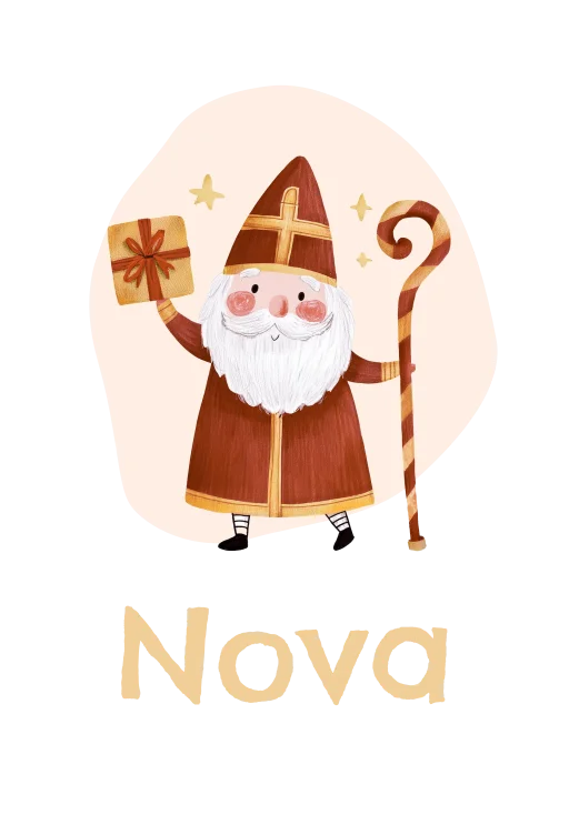 Dit is een leuk uitdeelzakje van jute om pepernoten of ander snoepgoed in te doen. Op het zakje staat een sinterklaas en naam. Het zakje is naar wens aan te passen in onze online opmaaktool.
