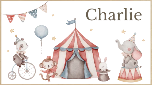 Wat een vrolijke houten tekendoos! De doos heeft lieve illustraties van verschillende circus dieren en circustent. Boven de feestelijke illustraties lees je de naam van het kind. Pas het ontwerp naar wens aan in onze opmaaktool.
