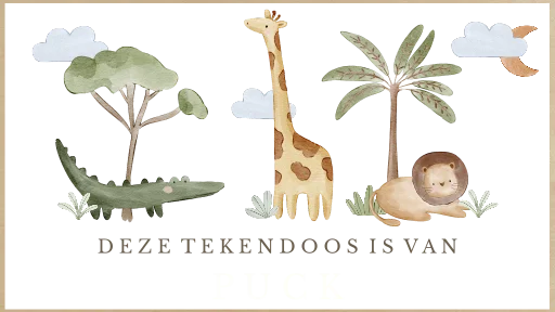 Wat een toffe houten tekendoos! De doos heeft lieve illustraties van verschillende jungle dieren. Onder de dieren lees je de tekst 'tekendoos van Daan'. Pas het ontwerp naar wens aan in onze opmaaktool.