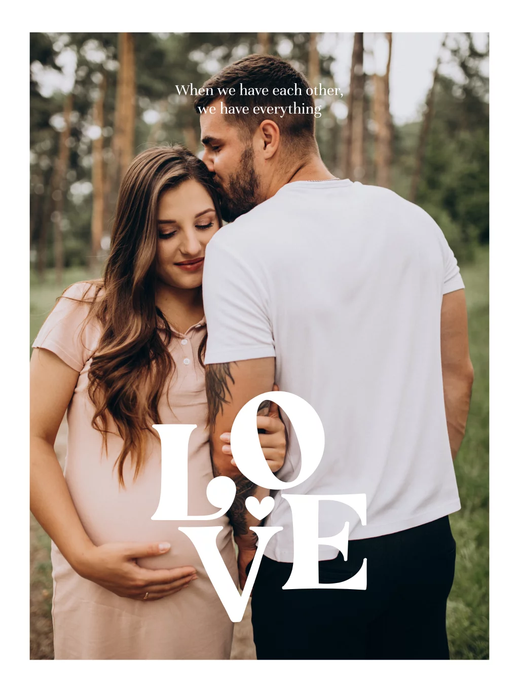 Dit is een prachtige poster. Op de poster upload je een eigen foto en lees je de tekst "When we have each other, we have everything" en "Love". De poster kan naar wens aangepast worden in onze online opmaaktool.