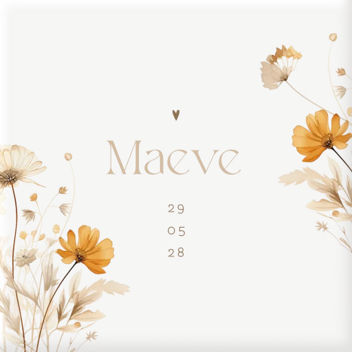 Geboortetegel met bloemen, naam en datum