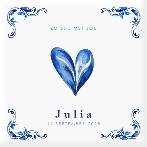 Geboortetegel met Delfts blauw, hart en naam
