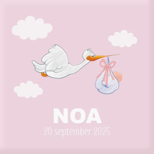 Geboortetegel met ooievaar, baby, naam en geboortedatum