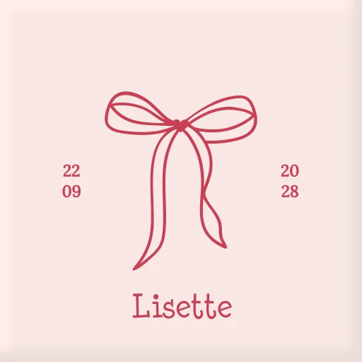 Een geboortetegeltje voor jouw kindje of als kraamcadeau. De tegel heeft een roze achtergrond met daarop een rood strikje. Op de tegel staat de naam van jullie kindje en de geboorte gegevens. Pas de tegel zelf volledig naar wens aan.