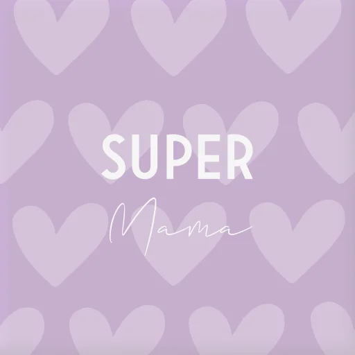 Een schattig tegeltje voor moederdag. De tegel heeft een paarse achtergrond. Daarnaast lees je de tekst: Super mama. Pas de tegel zelf volledig naar wens aan in onze online opmaaktool.