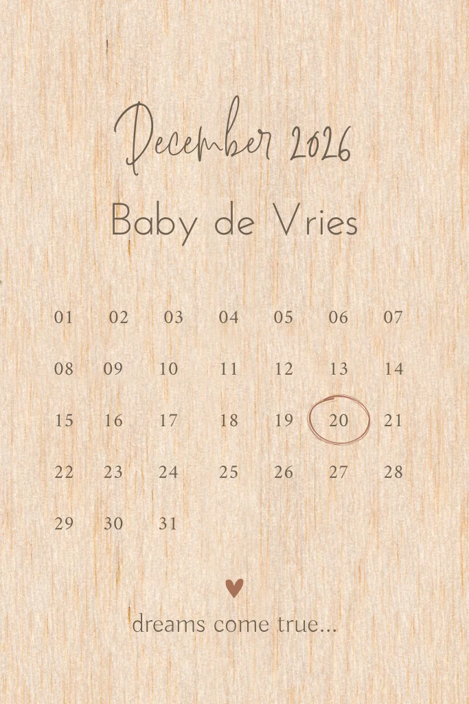 Verras vrienden en familie met een houten kaart om jullie zwangerschap op een bijzondere manier aan te kondigen! Personaliseer de kaart met jullie namen en de uitgerekende datum, zodat de aankondiging echt persoonlijk en uniek wordt. Pas het ontwerp eenvoudig aan in onze online editor.