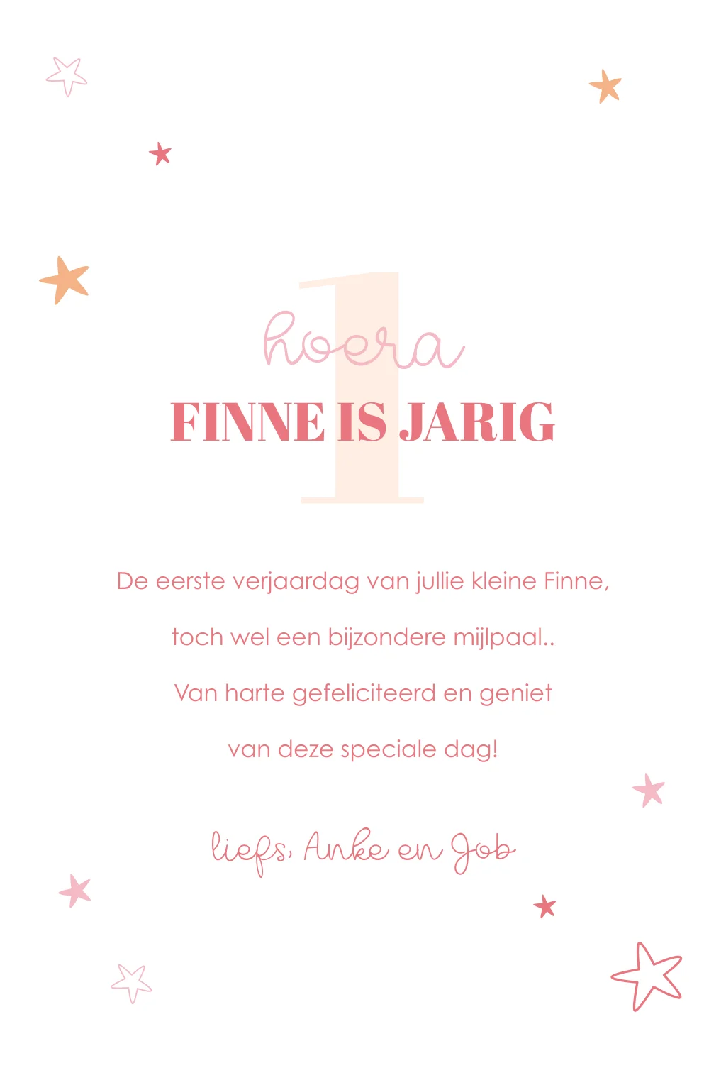 Dit is een mooie verjaardagswenskaart met allemaal sterretjes. De kaart kan helemaal naar wens aangepast worden in onze online opmaaktool. Leuk in combinatie met de bijpassende cadeaudoos!