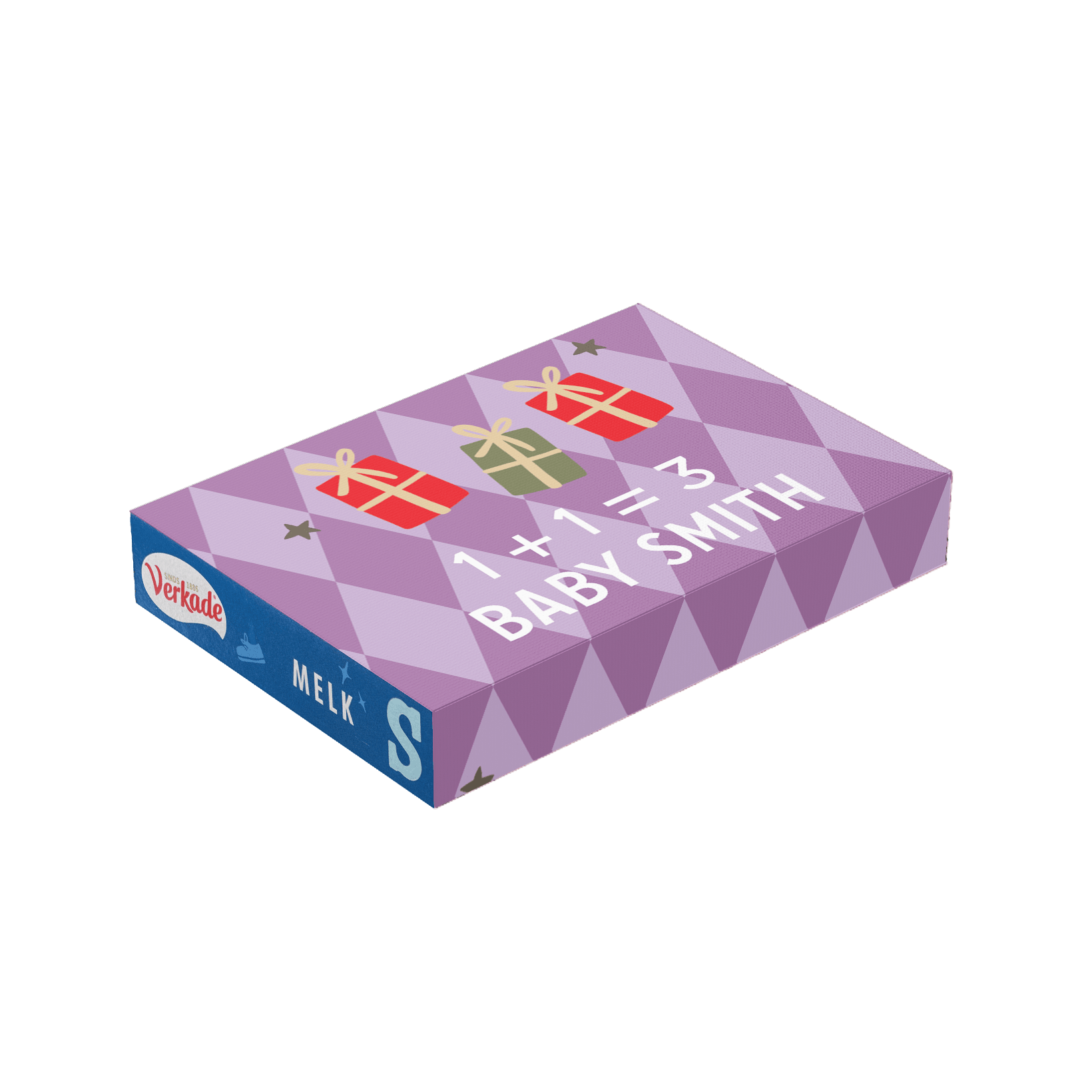 Een originele en lekkere zwangerschapsaankondiging. Geef deze chocoladeletter cadeau en deel jullie babynieuws. De wikkel heeft een ruitpatroon en 3 cadeautjes. Pas de wikkel naar wens aan in onze online opmaaktool.