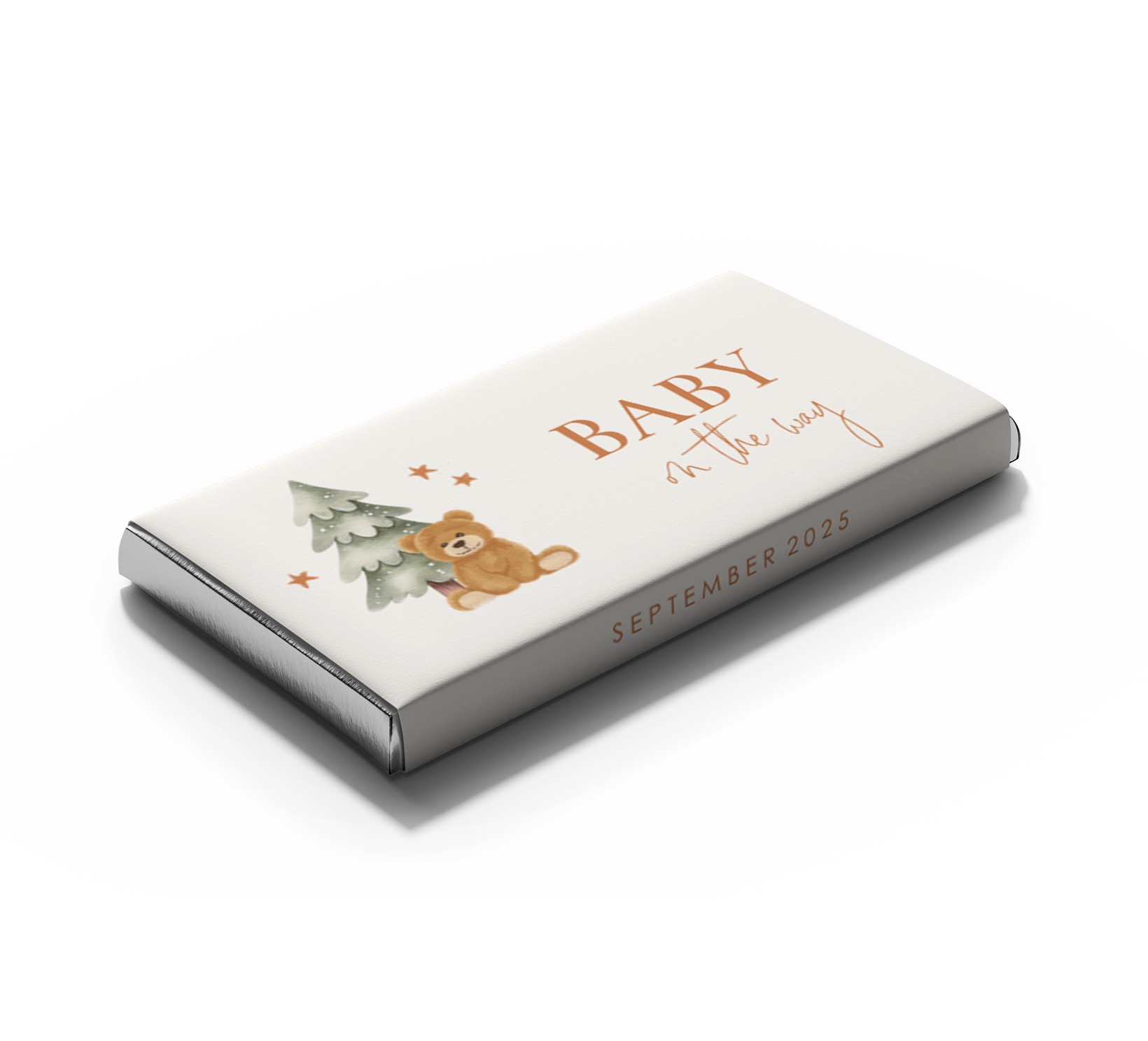 Maak jullie zwangerschap op een unieke manier bekend met deze gepersonaliseerde chocoladewikkel! De wikkel heeft de illustratie van een lief beertje die voor de kerstboom zit en sterretjes. Daarnaast staat de tekst "Baby on the way" en de uitgerekende datum. Kies je smaak Tony Chocolonely en pas de wikkel volledig naar wens aan in onze online editor.