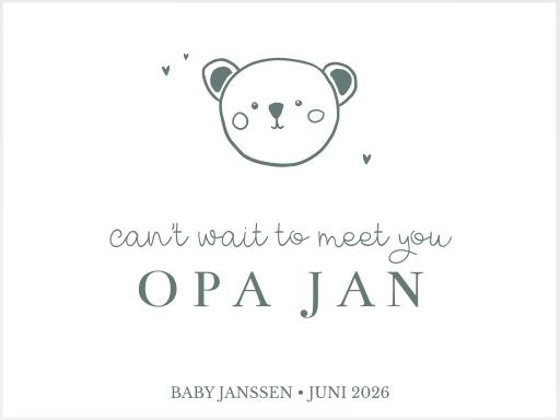Dit koffertje is speciaal voor het aankondigen van je zwangerschap. Verras vrienden of familie met dit unieke cadeau. Op het koffertje zie je lieve illustratie van een berenhoofdje. Pas de tekst en kleuren aan in onze online editor.