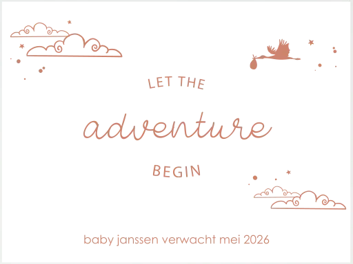 Dit koffertje is speciaal voor het aankondigen van je zwangerschap. Verras vrienden of familie met dit unieke cadeau. Op het koffertje zie je lieve illustraties van wolkjes en een ooievaar. Pas de tekst en kleuren aan in onze online editor.