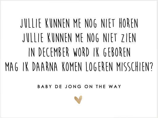 Dit is een mooi koffertje speciaal voor het aankondigen van je zwangerschap. Verras vrienden of familie met dit unieke cadeau. Op het koffertje zie je een leuk gedichtje. Pas de tekst aan in onze online editor.