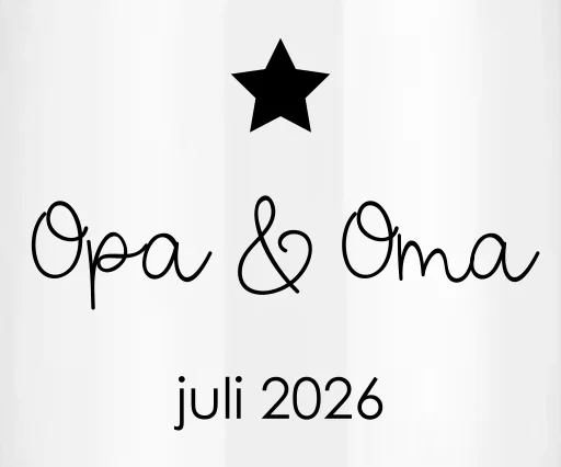 Kondig op een originele manier aan dat je een kindje krijgt met dit champagneglas! Op dit glas staat een sterretje, met daar onder opa & oma met de uitgerekende datum. De tekst is naar wens aan te passen in onze online opmaaktool.