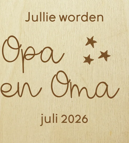 Kondig je zwangerschap aan met deze houten kersthanger in de vorm van een kerstbal. Op de hanger zie je sterren. De hanger is naar wens aan te passen in onze online opmaaktool.