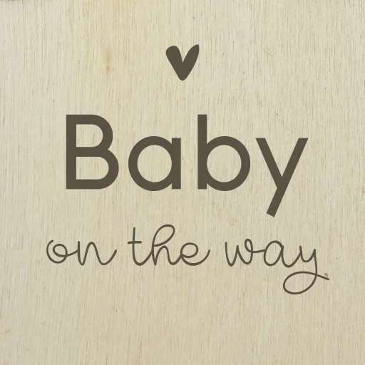 Kondig jouw zwangerschap aan met onze houten kersthangers. Op de hanger lees je de tekst 'Baby on the way'. Daarnaast zie je een lief hartje. Pas de tekst en datum naar wens aan in onze opmaaktool.
