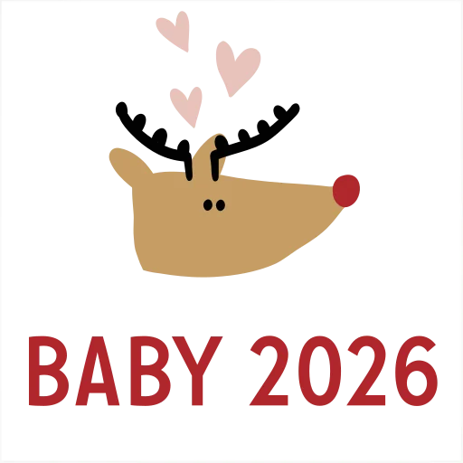 Op deze kerstbal staat de lieve illustratie van een rendier met hartjes. Daaronder staat Baby 2025. Uniek om jullie zwangerschap mee aan te kondigen.