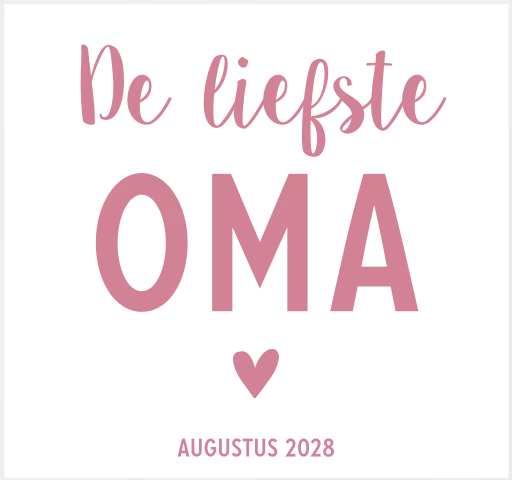 Maak met deze mok jullie zwangerschap bekend. Op de mok staat de tekst: de liefste oma, en de uitgerekende datum jullie kleintje. Pas het ontwerp naar wens aan in onze online editor.