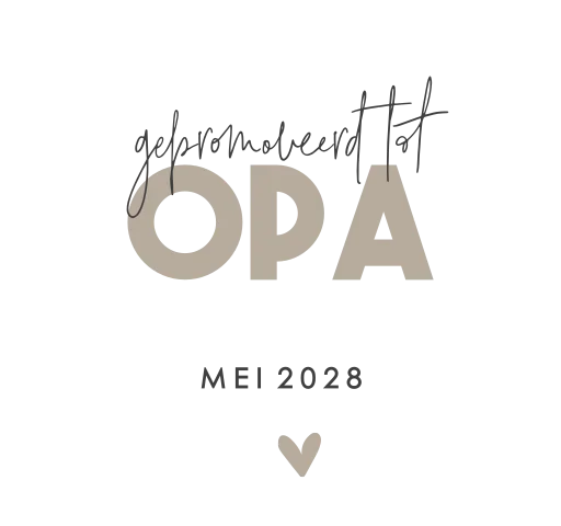 Maak met deze mok jullie zwangerschap bekend. De mok heeft de tekst: gepromoveerd tot opa, met daaronder de uitgerekende datum van jullie kleintje. Pas het ontwerp naar wens aan in onze online editor.