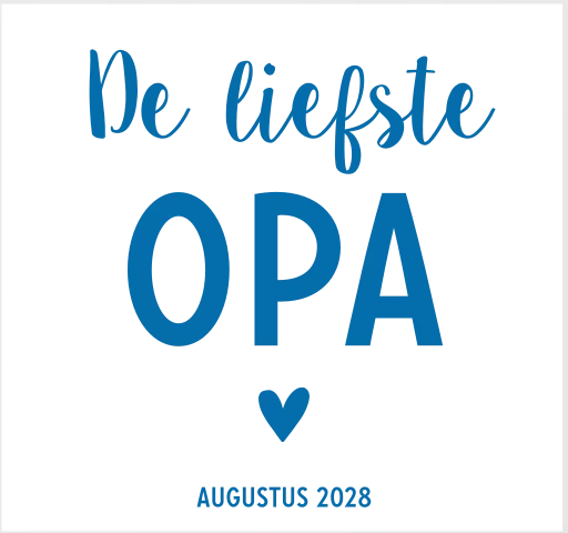 Maak met deze mok jullie zwangerschap bekend. De mok heeft de tekst: de liefste opa, met daaronder de uitgerekende datum van jullie kleintje en een hartje. Pas het ontwerp naar wens aan in onze online editor.