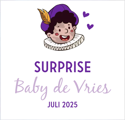 Een schattige en unieke zwangerschapsaankondiging: een rompertje met een pietje en de tekst 'Surpise'. Daaronder is ruimte voor de uitgerekende datum en de achternaam. Personaliseer het ontwerp volledig naar wens in onze online editor.