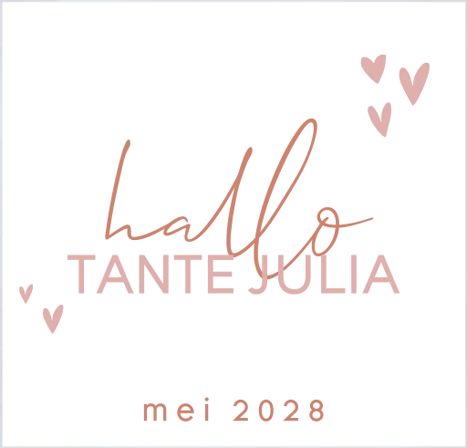 Een hele leuke manier om jouw zwangerschap aan te kondigen! Dit rompertje heeft lieve roze hartjes en de tekst: 'Hallo tante...'. Daaronder staat de uitgerekende datum. Je kunt de tekst en de datum zelf aanpassen in de online editor.