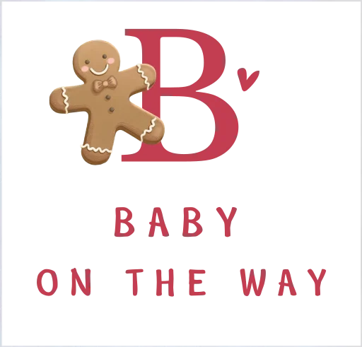 Kondig jouw zwangerschap deze kerst aan met een schattig rompertje. Dit rompertje heeft een schattige illustratie van een koekmannetje. Daarnaast lees je de tekst 'Baby on the way'. Pas de tekst naar wens aan in onze opmaaktool.