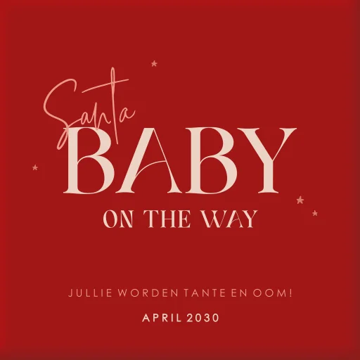 Hoe leuk is dit tegeltje om je zwangerschap aan te kondigen! Dit tegeltje is in kerstthema en heeft klassieke belettering en een rode achtergrond. Bewerk het ontwerp naar wens in de online editor.