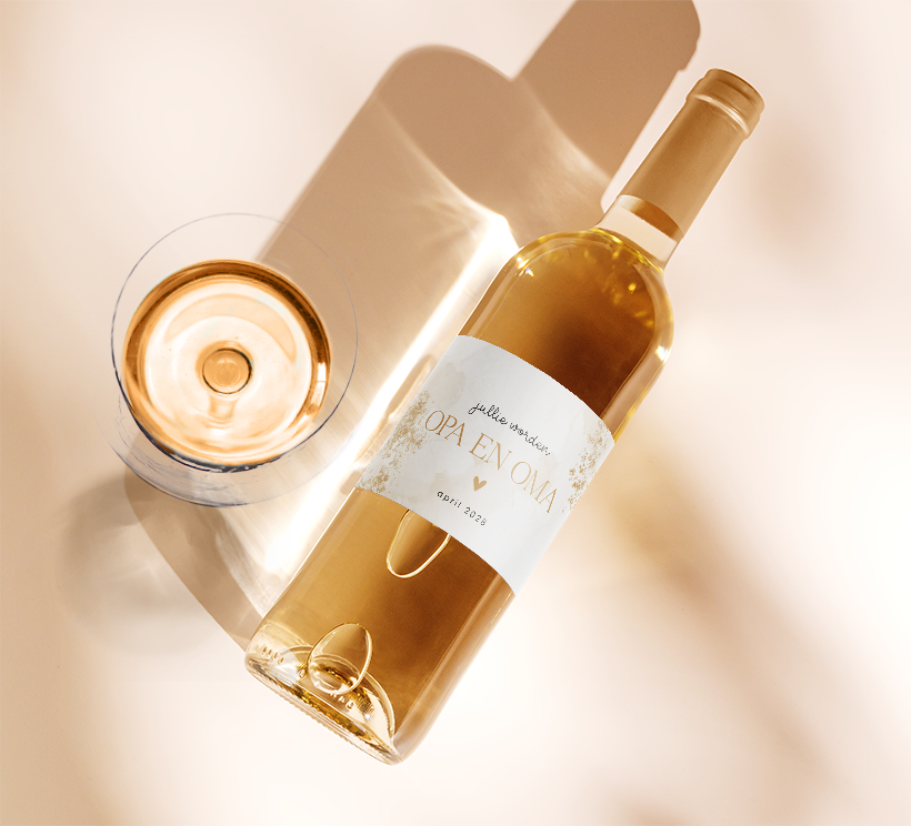 Kondig de zwangerschap aan op een unieke manier door jouw eigen etiket op een wijnfles te plakken. Op dit etiket staat een leuke tekst met gouden details die je zelf naar wens kunt aanpassen in onze online editor. Op één vel staan 5 wijnetiketten.